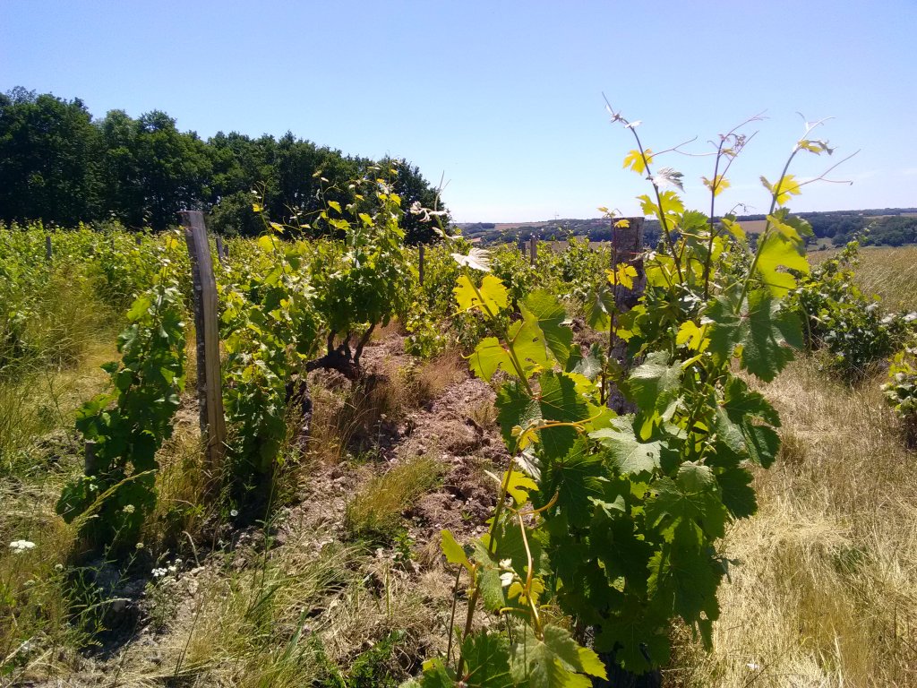 En toute discrétion, en émanant une odeur délicate, la vigne fleurit ces jours-ci. Le temps est idéal pour la floraison : du soleil et du vent. Les parcelles de Chenin les plus hautes en « altitude » sont complètement en fleur. Le Pineau d’Aunis lui n’a pas encore commencé. Chacun son tour.