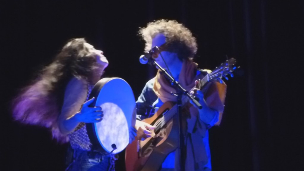 Bruno Duchâteau (slam, guitare, didjeridoo) et Sylvie Marin (chant, machines, slam, clavier, tongue drum, percussions, harmonica) s’harmonisent et se répondent dans un souffle lyrique et puissant.