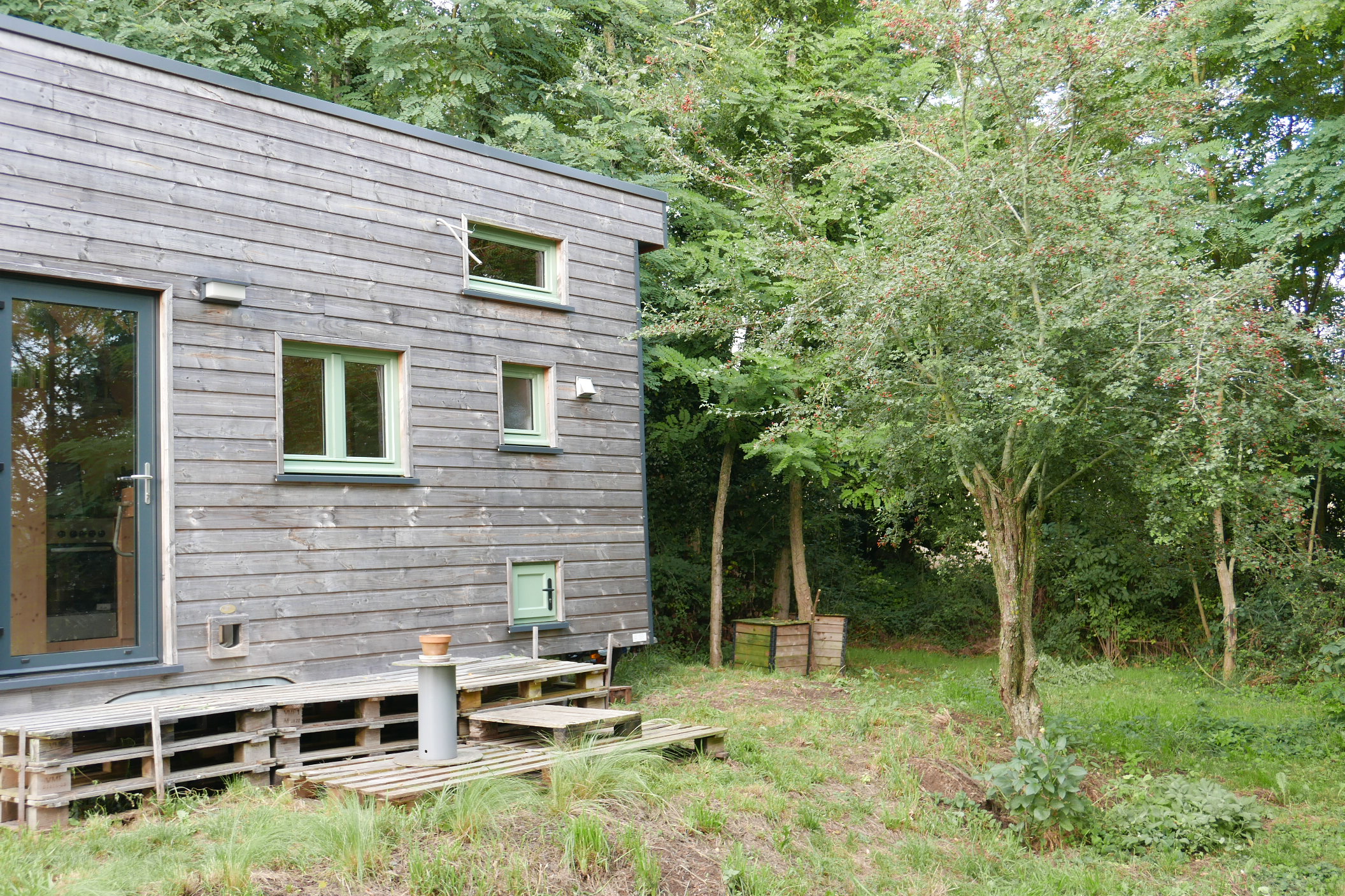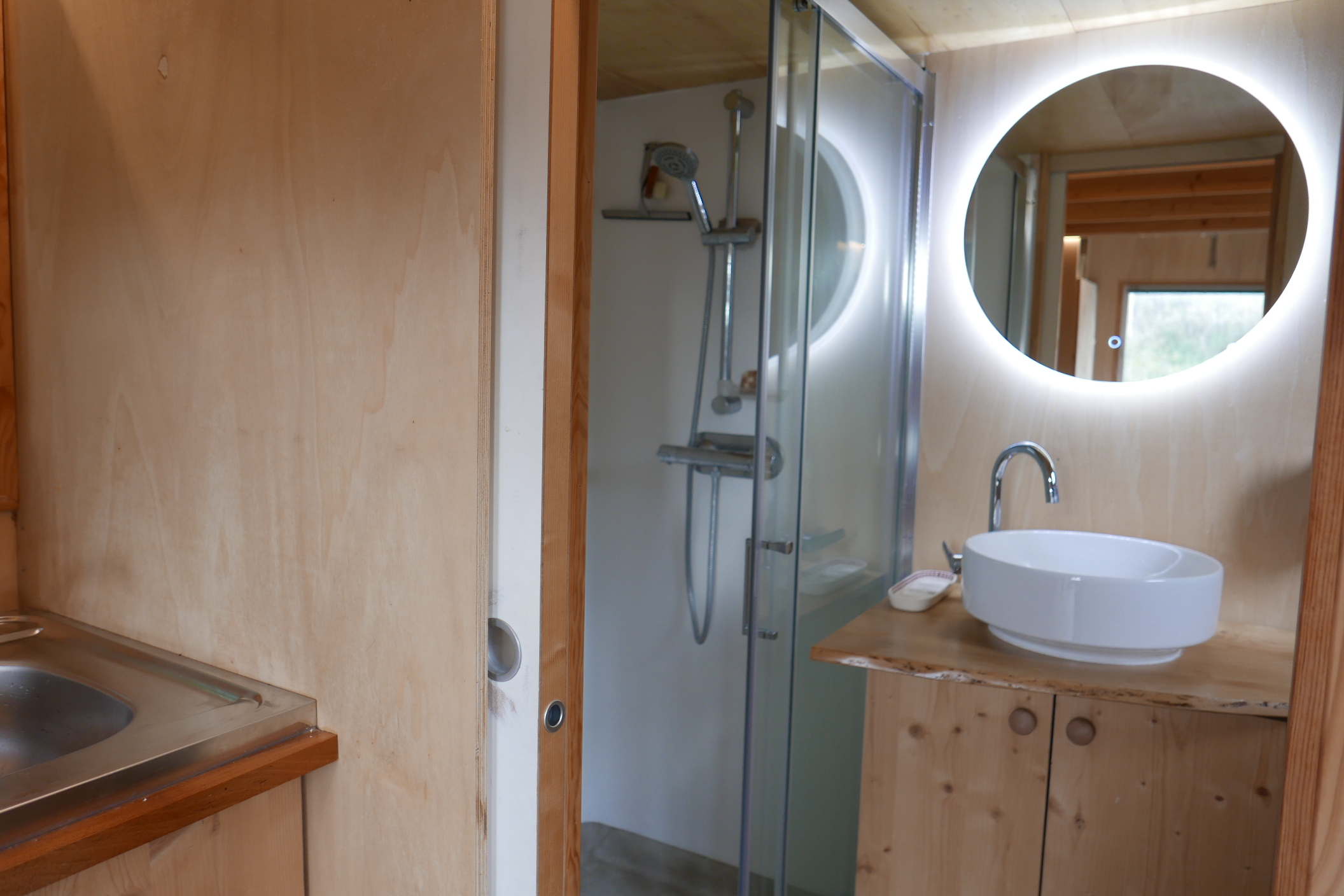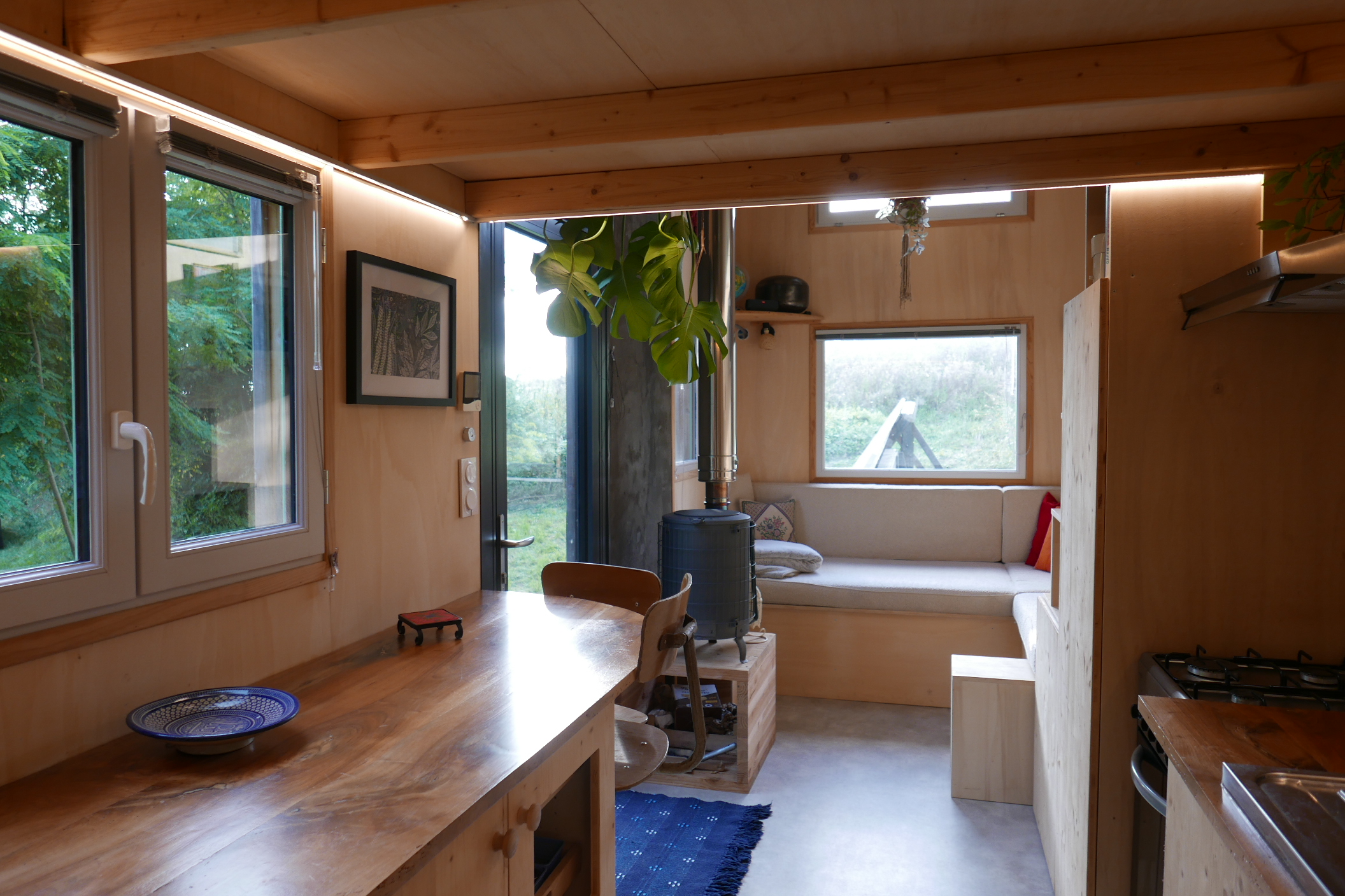 Au dessus de la cave, tout près de la jeune vigne de Chenin, se cache une TINY HOUSE qui peut vous accueillir pour un séjour en pleine nature. Conçue en matériaux écologiques, alimentée par des panneaux solaires, chauffée au bois, ce petit cocon est idéal pour déconnecter totalement des habitudes, du travail, du bruit !